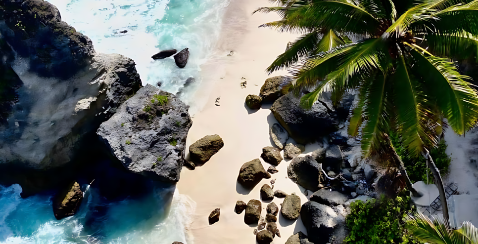 이름처럼 빛나는 다이아몬드 비치는 백사장과 맑은 바다로 유명한 해변입니다. 해변으로 내려가는 계단은 조금 가파르지만, 내려가서 바라보는 풍경은 정말 대단했습니다. 모래사장을 걷고 파도 소리를 들으며 자연과 하나가 된 기분을 만끽할 수 있었습니다.