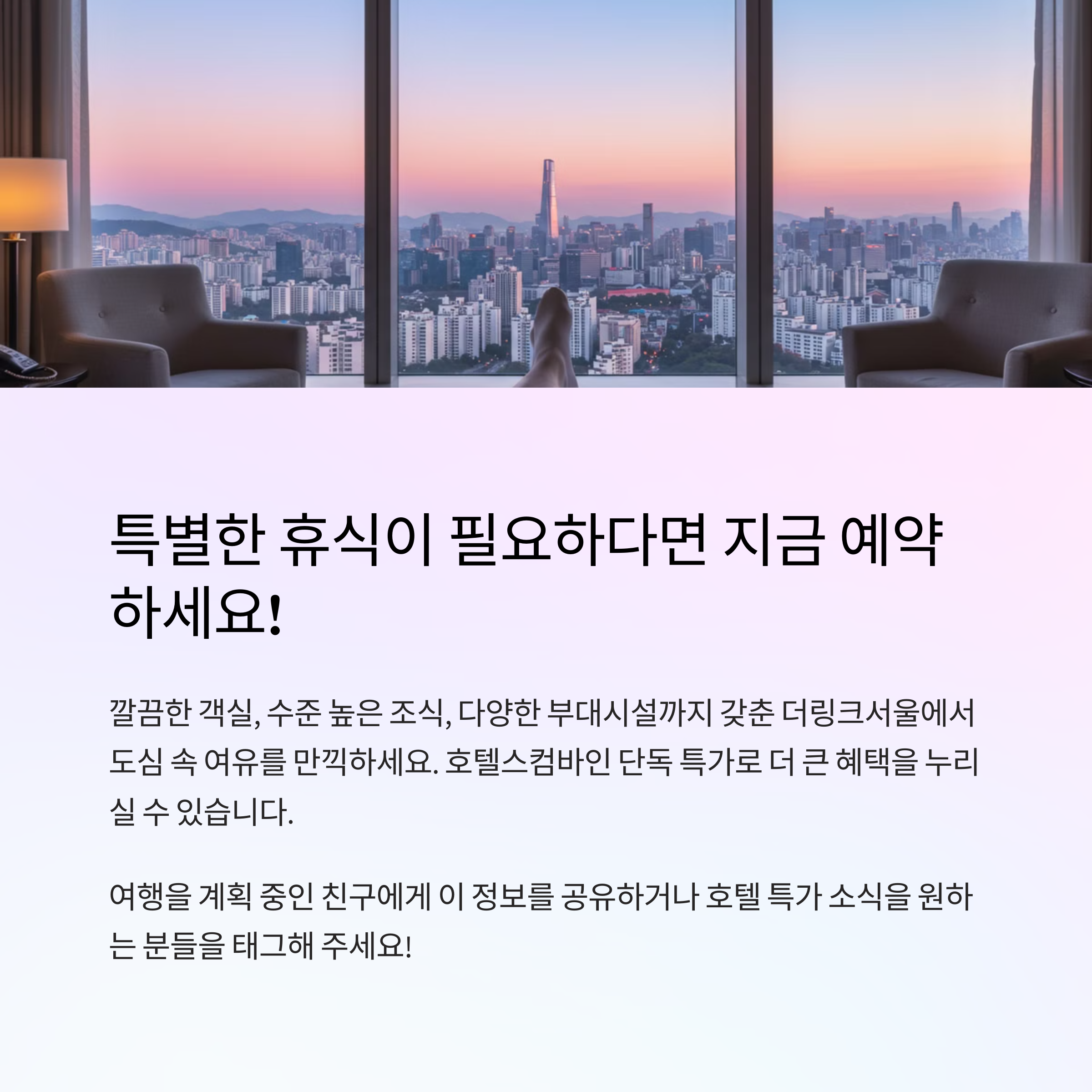 호텔스컴바인을 통해 단독 특가 예약 시, 특별한 혜택이 기다리고 있어요.