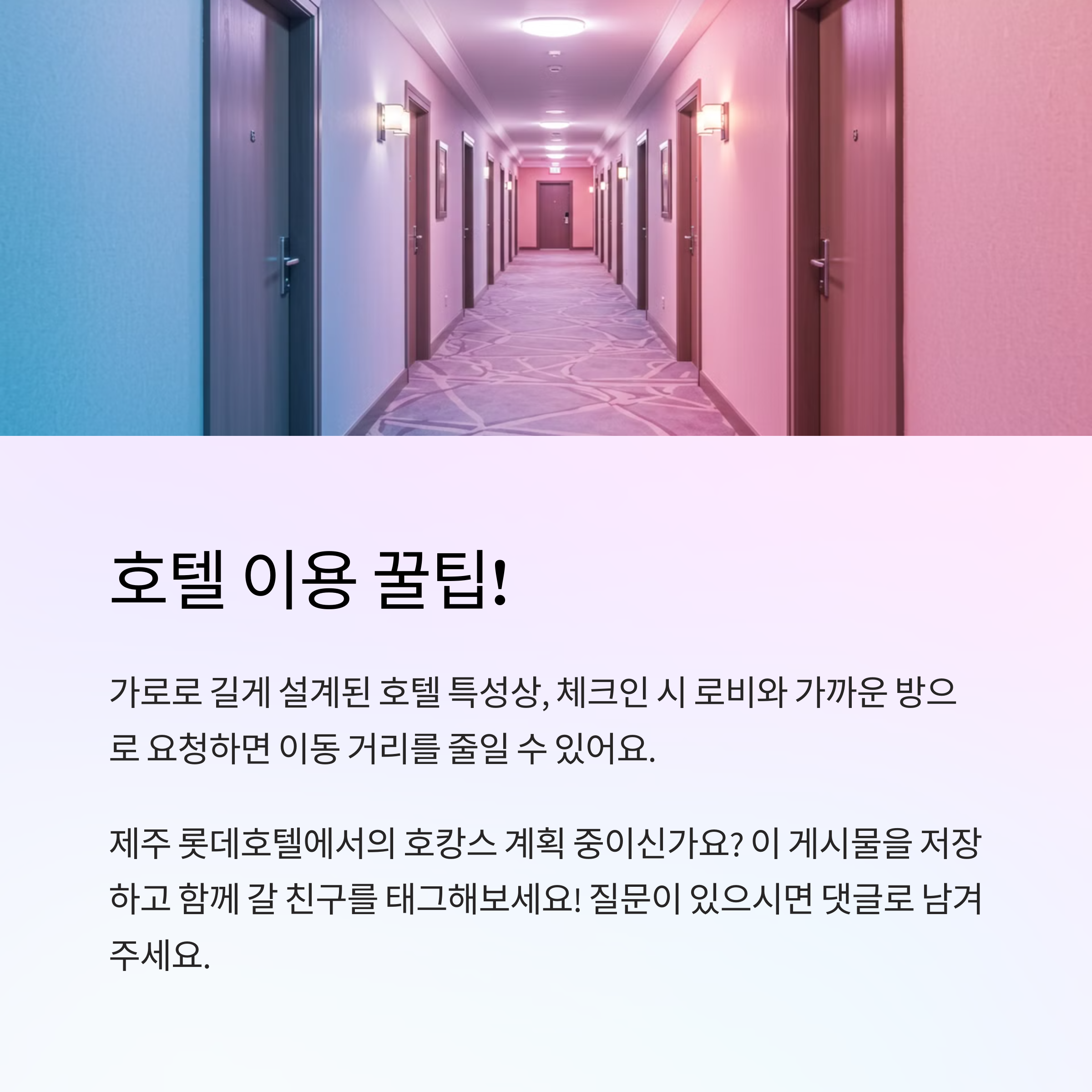 체크인 시 로비와 가까운 방으로 요청해두는 걸 추천드립니다!