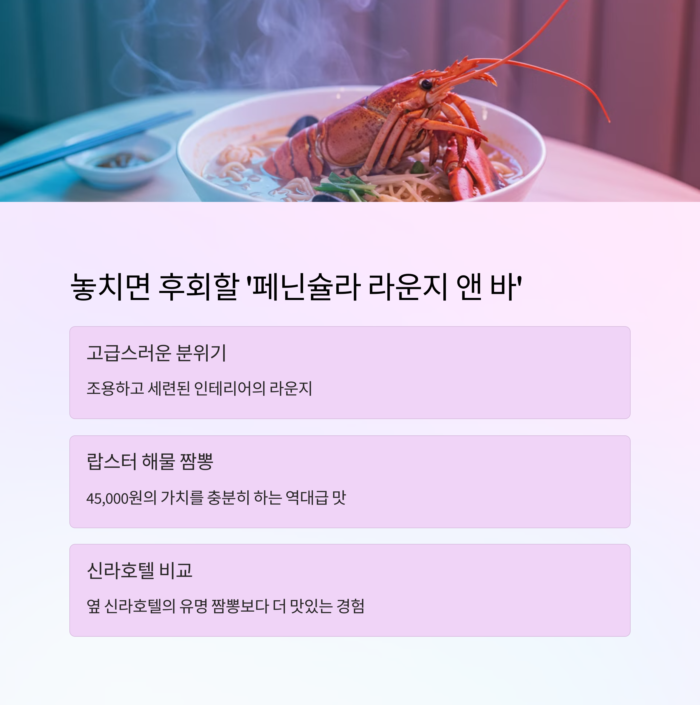 여기서 먹은 랍스터 해물 짬뽕은... 정말 역대급이었습니다.