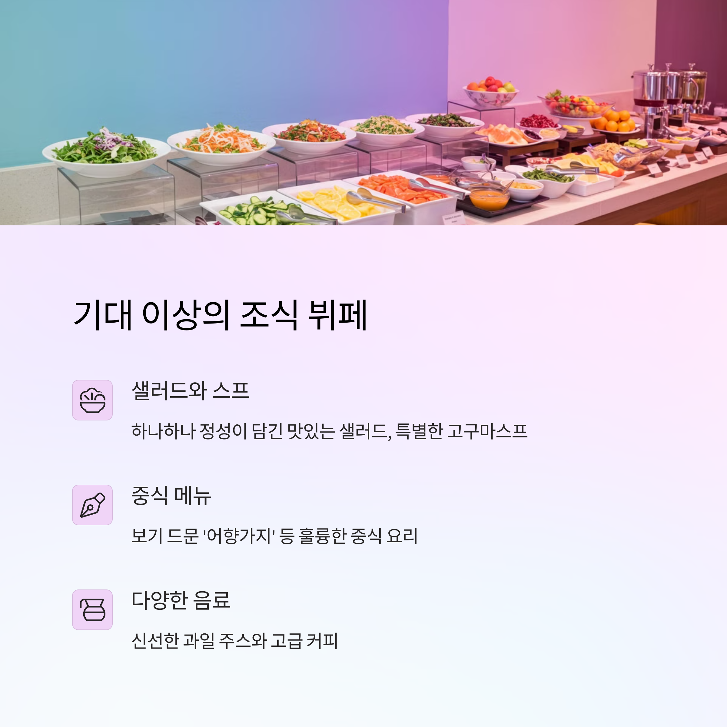 조식 뷔페도 기대 이상이었습니다.