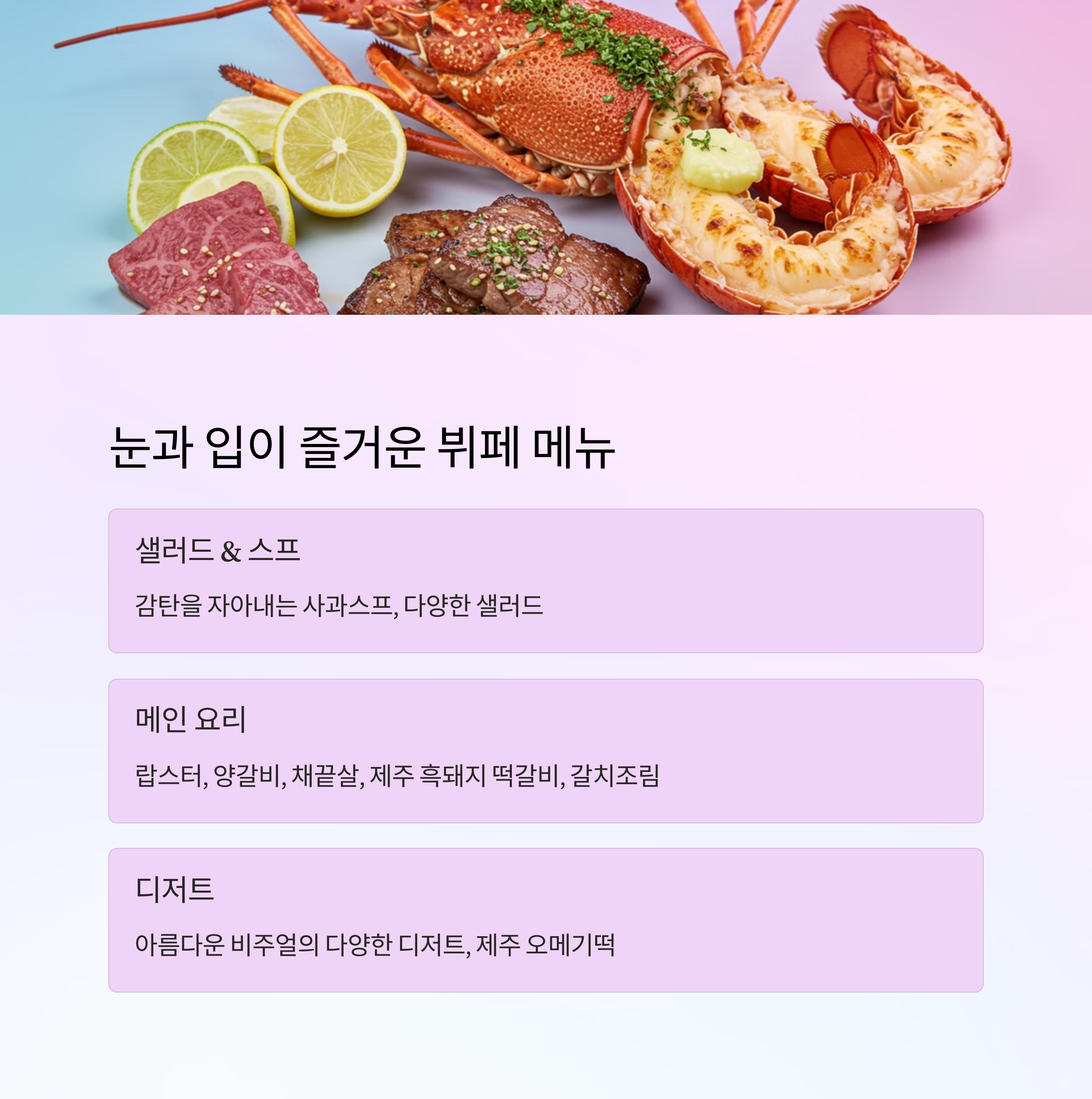 🥩 그릴 메뉴의 랍스터, 양갈비, 채끝살