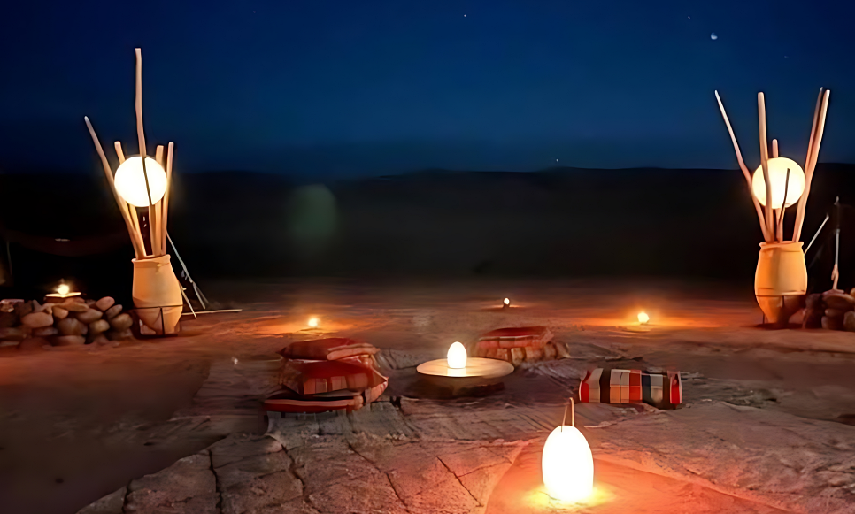 노을이 끝나고, 전통적인 베르베르 텐트에서 저녁 식사가 시작되었습니다. 아로마 가득한 타진(Tajine) 요리와 부드러운 쿠스쿠스는 아프리카의 풍미를 가득 담고 있었어요. 식사 중간에는 현지 전통 음악과 댄스를 곁들인 화려한 공연이 이어졌습니다. 춤추는 불 쇼와 북소리가 울리는 순간, 사막의 밤은 더할 나위 없이 특별하게 느껴졌습니다.
