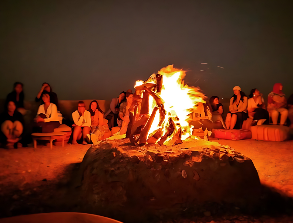 노을이 끝나고, 전통적인 베르베르 텐트에서 저녁 식사가 시작되었습니다. 아로마 가득한 타진(Tajine) 요리와 부드러운 쿠스쿠스는 아프리카의 풍미를 가득 담고 있었어요. 식사 중간에는 현지 전통 음악과 댄스를 곁들인 화려한 공연이 이어졌습니다. 춤추는 불 쇼와 북소리가 울리는 순간, 사막의 밤은 더할 나위 없이 특별하게 느껴졌습니다.
