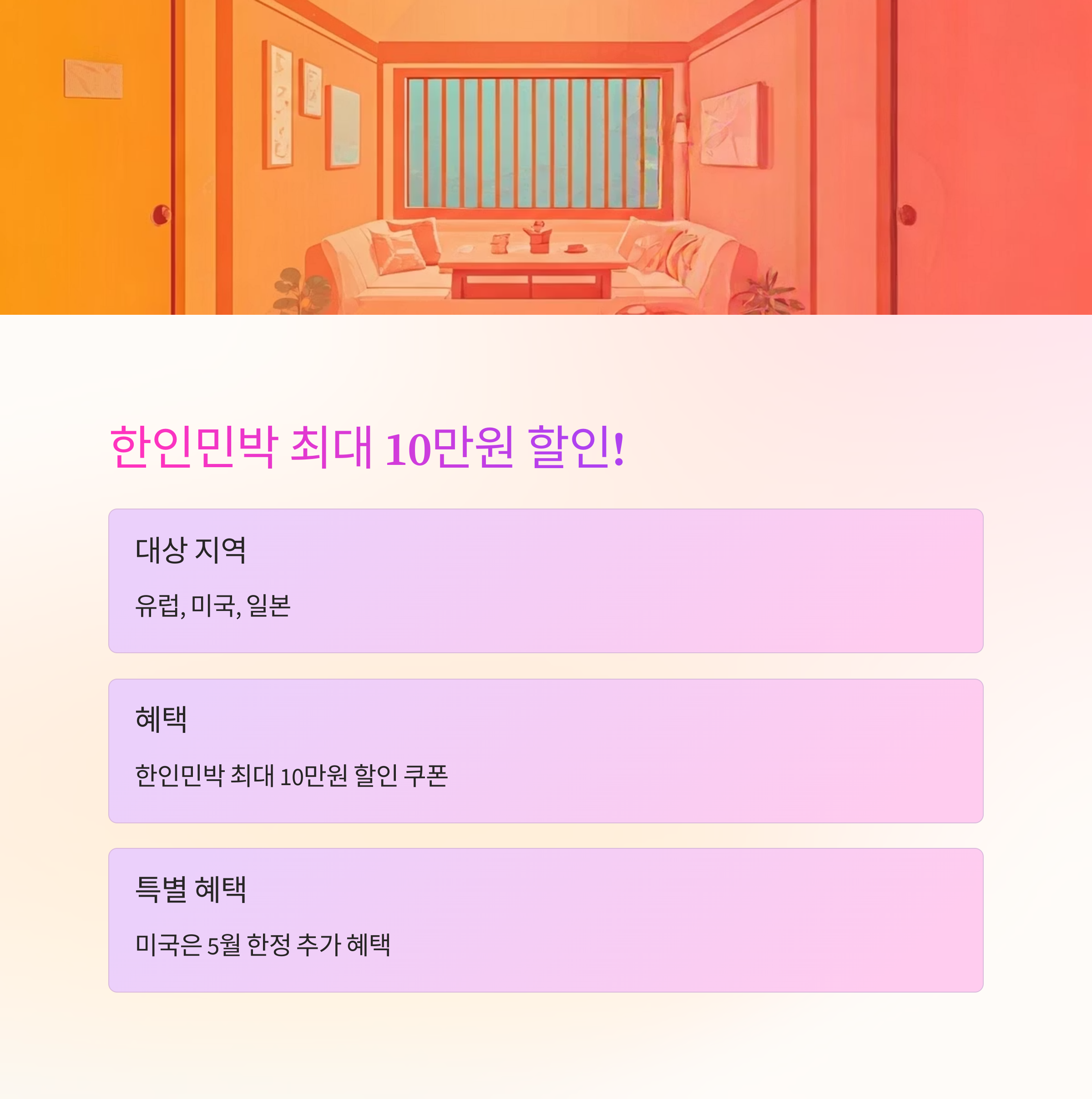 혜택: 한인민박 최대 10만 원 할인 쿠폰