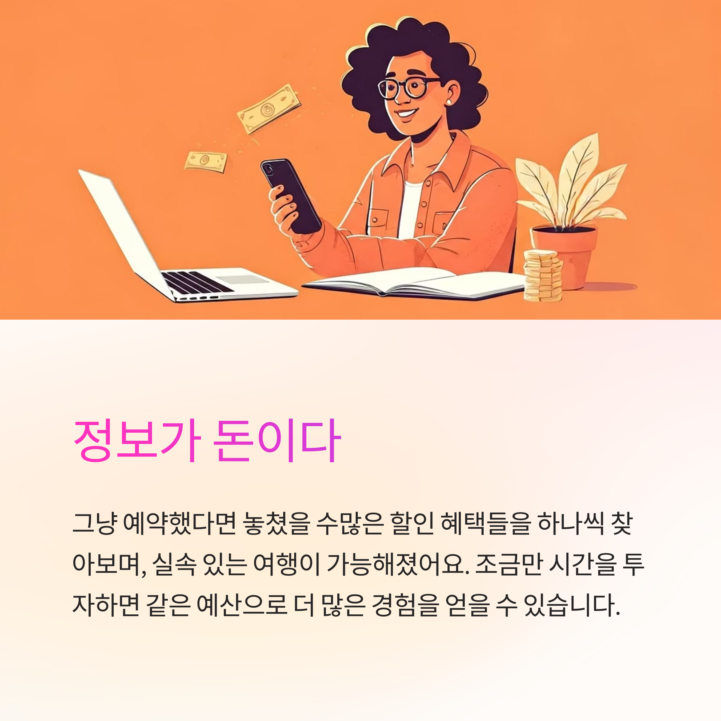 그냥 예약했다면 놓쳤을 수많은 할인 혜택들을 하나씩 찾아보며, 실속 있는 여행이 가능해졌어요.