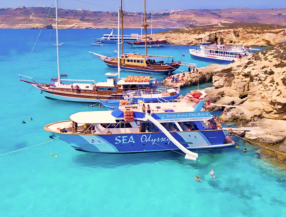 몰타에서의 하루, 아침 햇살이 따뜻하게 비치는 부기바(Bugibba) 항구에 도착하며 설레는 마음을 감출 수 없었습니다. 오늘의 일정은 바로 고조(Gozo) 섬과 코미노(Comino) 섬, 그리고 그 유명한 **블루 라군(Blue Lagoon)**과 해식 동굴(Seacaves)을 탐험하는 투어였습니다. 맑은 바다, 독특한 지형, 그리고 스릴 넘치는 액티비티들이 어우러진 하루가 될 것을 기대하며 보트에 몸을 실었습니다.