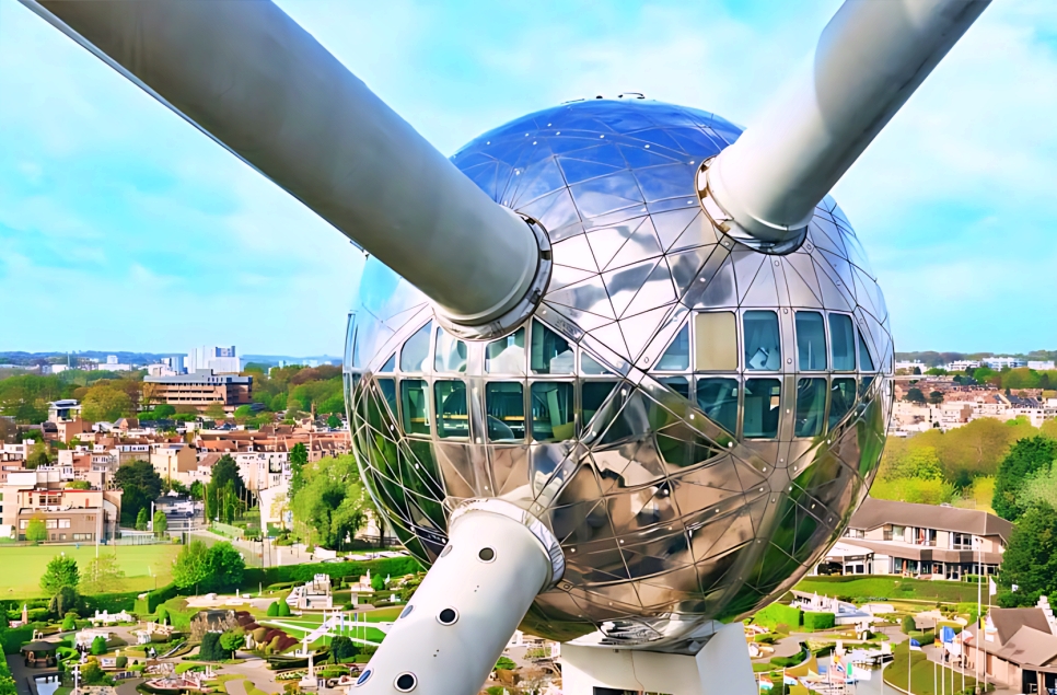 아토미움은 철의 결정 구조를 165억 배 확대하여 설계된 독창적인 구조로, 9개의 구형으로 이루어져 있습니다. 각각의 구는 과학, 예술, 디자인 전시관으로 활용되며, 최상층에서는 브뤼셀의 파노라마 뷰를 감상할 수 있습니다.