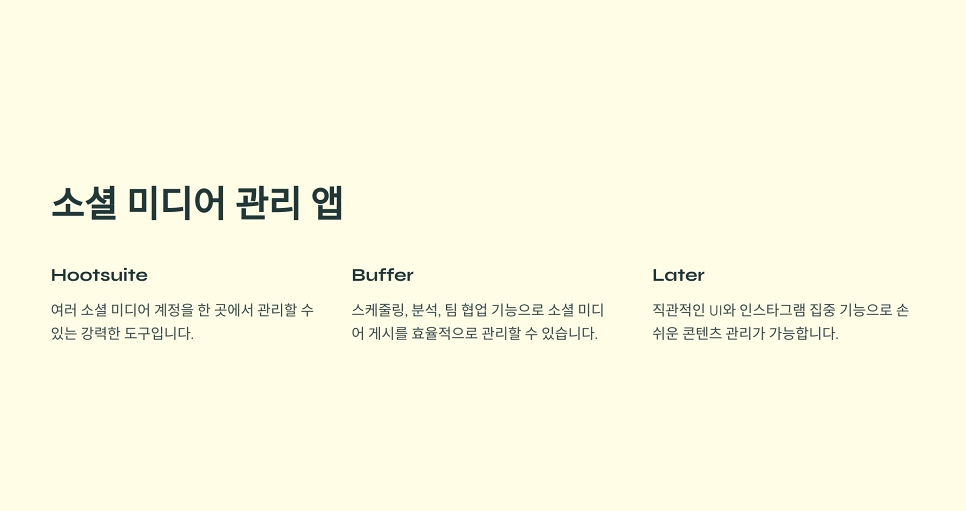 여러 소셜 플랫폼에서 다양한 콘텐츠를 운영하다 보면 효율성 있는 관리가 필수적입니다. Buffer는 여러 소셜 미디어 계정을 한 곳에서 관리하고 콘텐츠를 예약할 수 있는 기능을 제공합니다. 이를 통해 인플루언서는 시간과 노력을 절감할 수 있습니다.