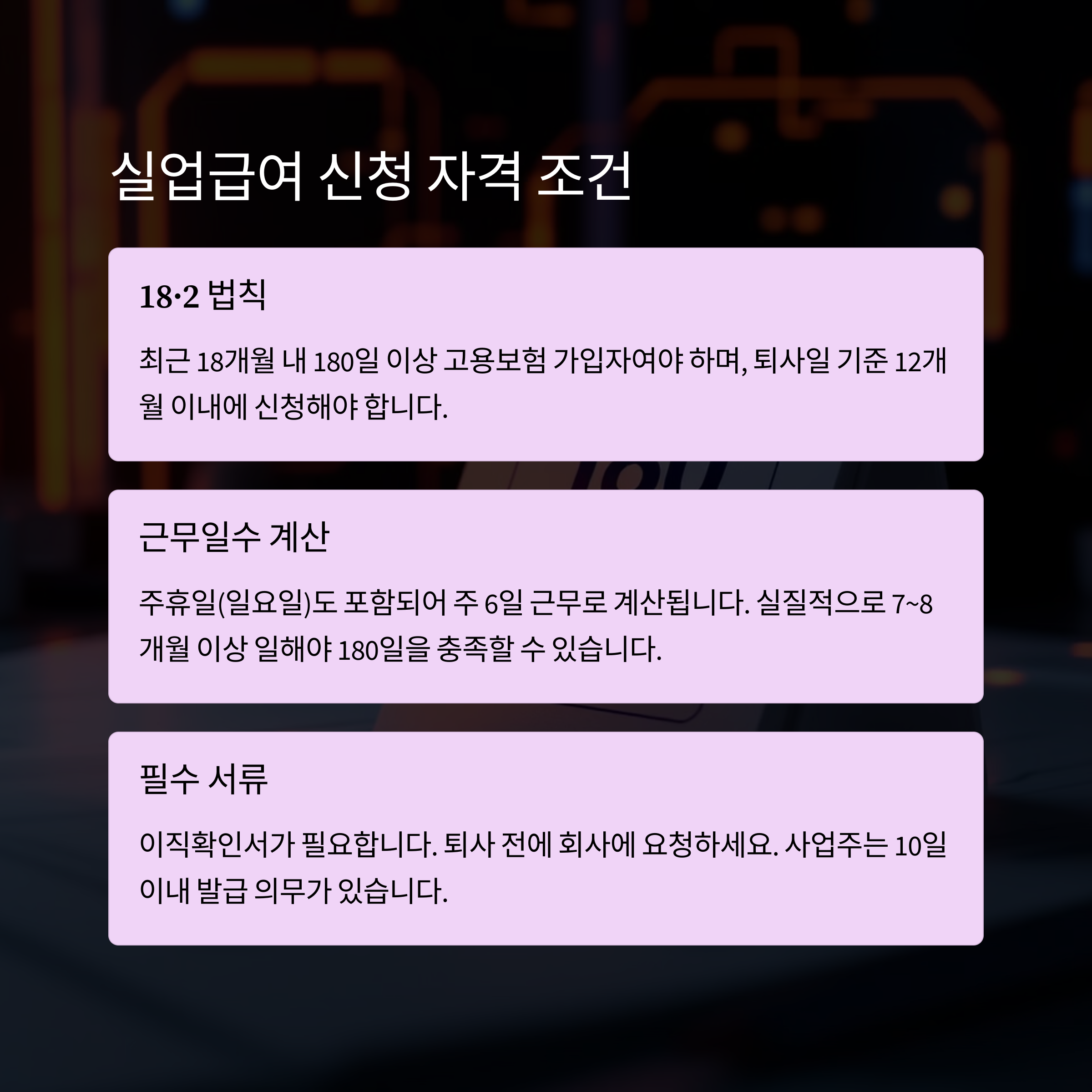 ✔️ 1. 실업급여 대상자 조건 (18·2 법칙)