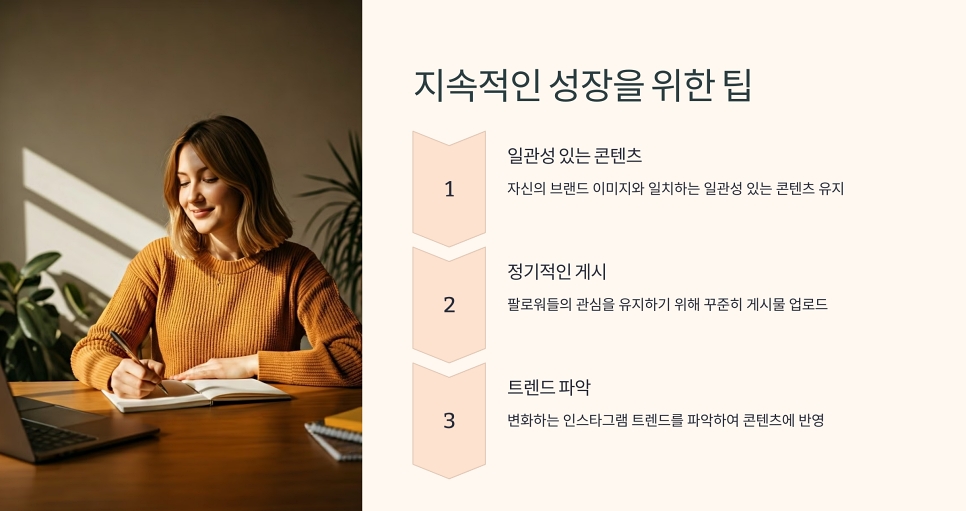 처음에는 내가 뭘 잘하고 뭘 보완해야 할지 몰라서 많이 막막했어요. 그러다가 인스타그램 통계 기능을 활용해 보니까, 내 게시물 중 어떤 게 반응이 좋았는지 한눈에 보이더라고요. 이걸로 데이터를 쌓아가며 전략을 조정하기 시작했어요. 어떤 게시물이 인기가 많았는지, 어떤 포맷에 반응이 좋았는지 체크하고 분석하면서 점점 내 콘텐츠가 팔로워들의 취향에 맞게 변했어요. 그리고 다른 인플루언서와 협업도 시도해 보면서 새로운 관객을 유입할 기회를 만들어 보았어요.