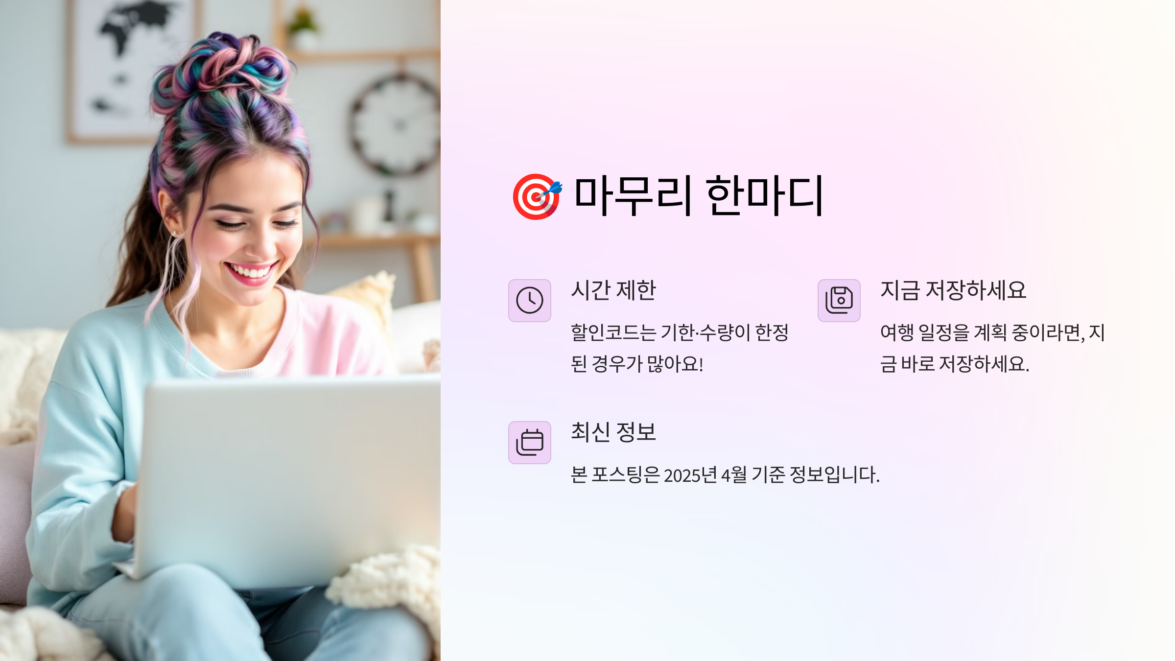 여행 일정을 계획 중이라면, 지금 바로 저장하고 예약 시 하나하나 적용해보세요 🌍