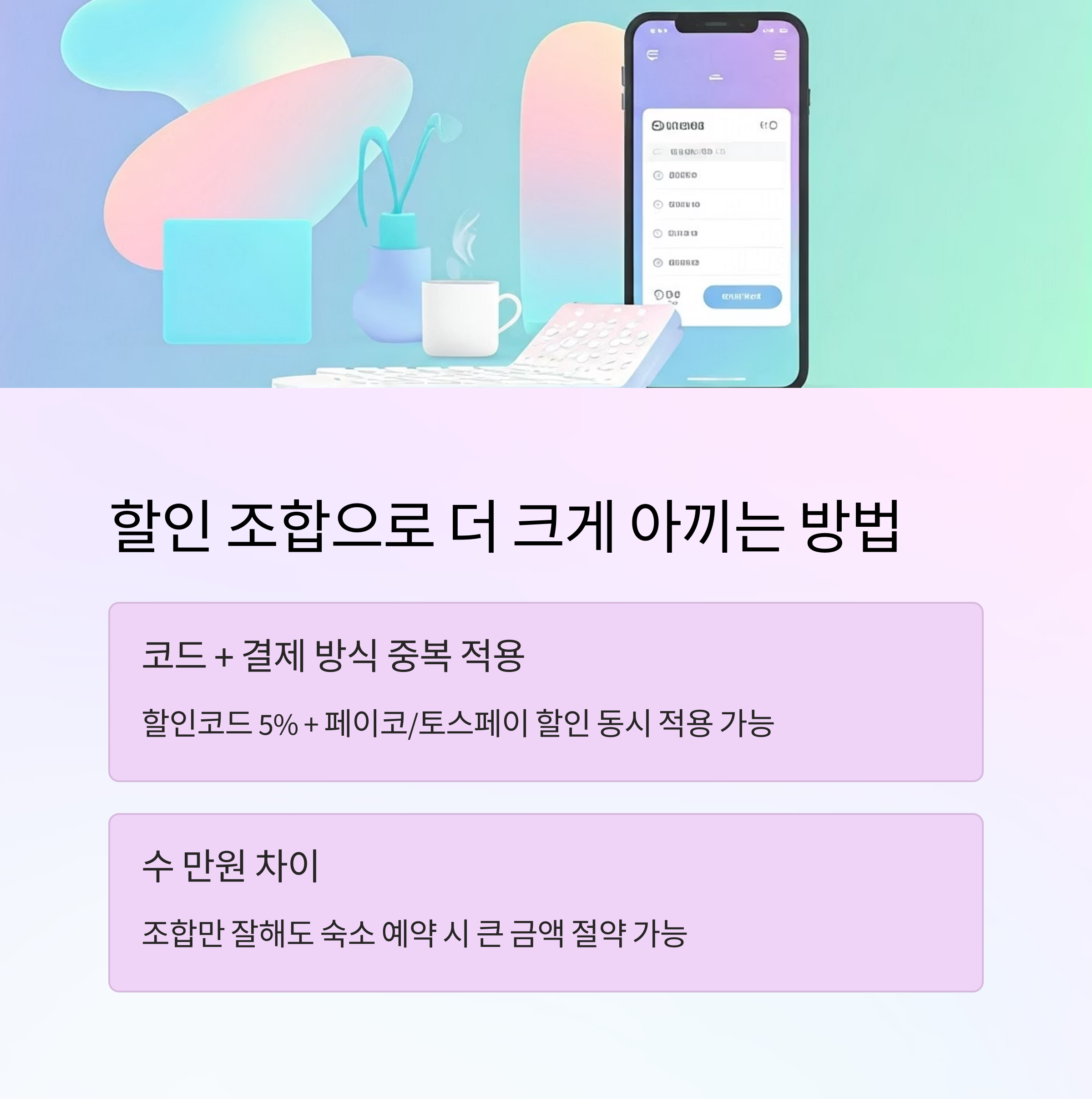 이건 고가 숙소나 장기 숙박 시 써먹기 좋아요. 무엇보다 다른 할인과 중복 가능하다는 게 큰 장점이죠.