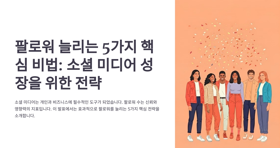 현대 사회에서 소셜 미디어는 더 이상 단순한 사교의 장이 아닙니다. 이는 개인, 브랜드, 그리고 비즈니스에 있어 필수적인 도구로 자리 잡았으며, 팔로워 수는 그 영향력과 신뢰도를 나타내는 중요한 지표가 되었습니다. 이 블로그 포스트에서는 팔로워를 효과적으로 늘릴 수 있는 다섯 가지 핵심 전략을 소개합니다. 이러한 전략들은 실제 사례와 통계를 기반으로, 귀하의 소셜 미디어 성장을 촉진할 것입니다.