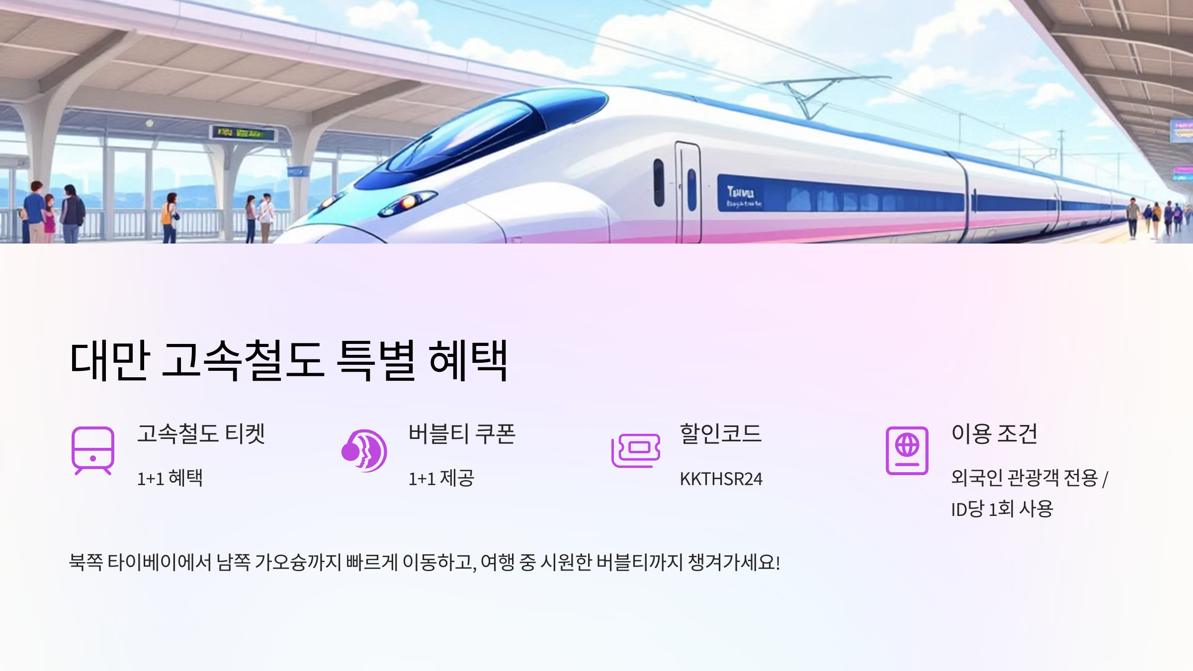 🚄 북쪽 타이베이에서 남쪽 가오슝까지 빠르게 이동하고,