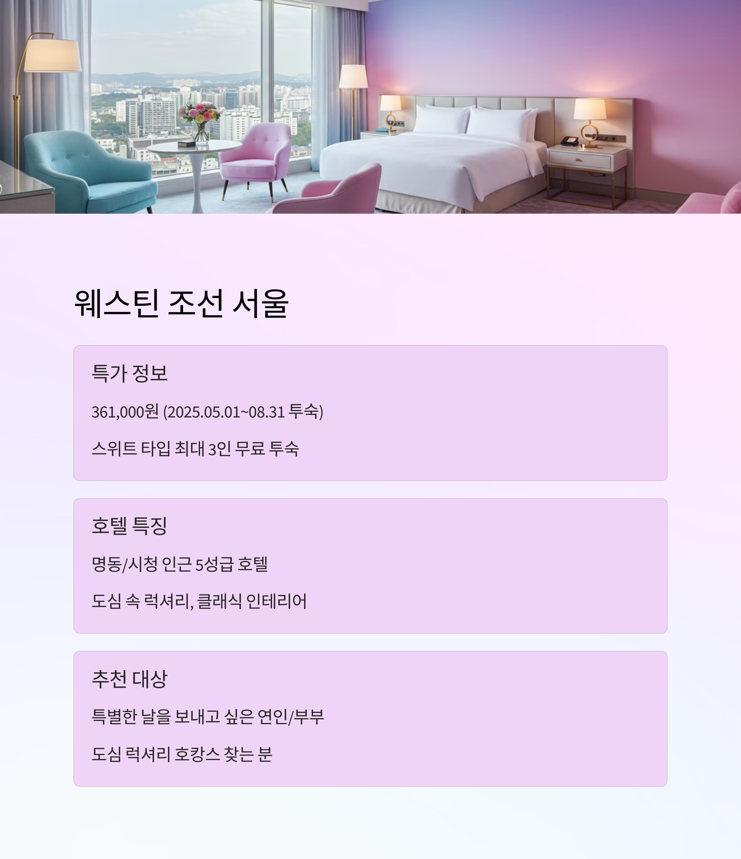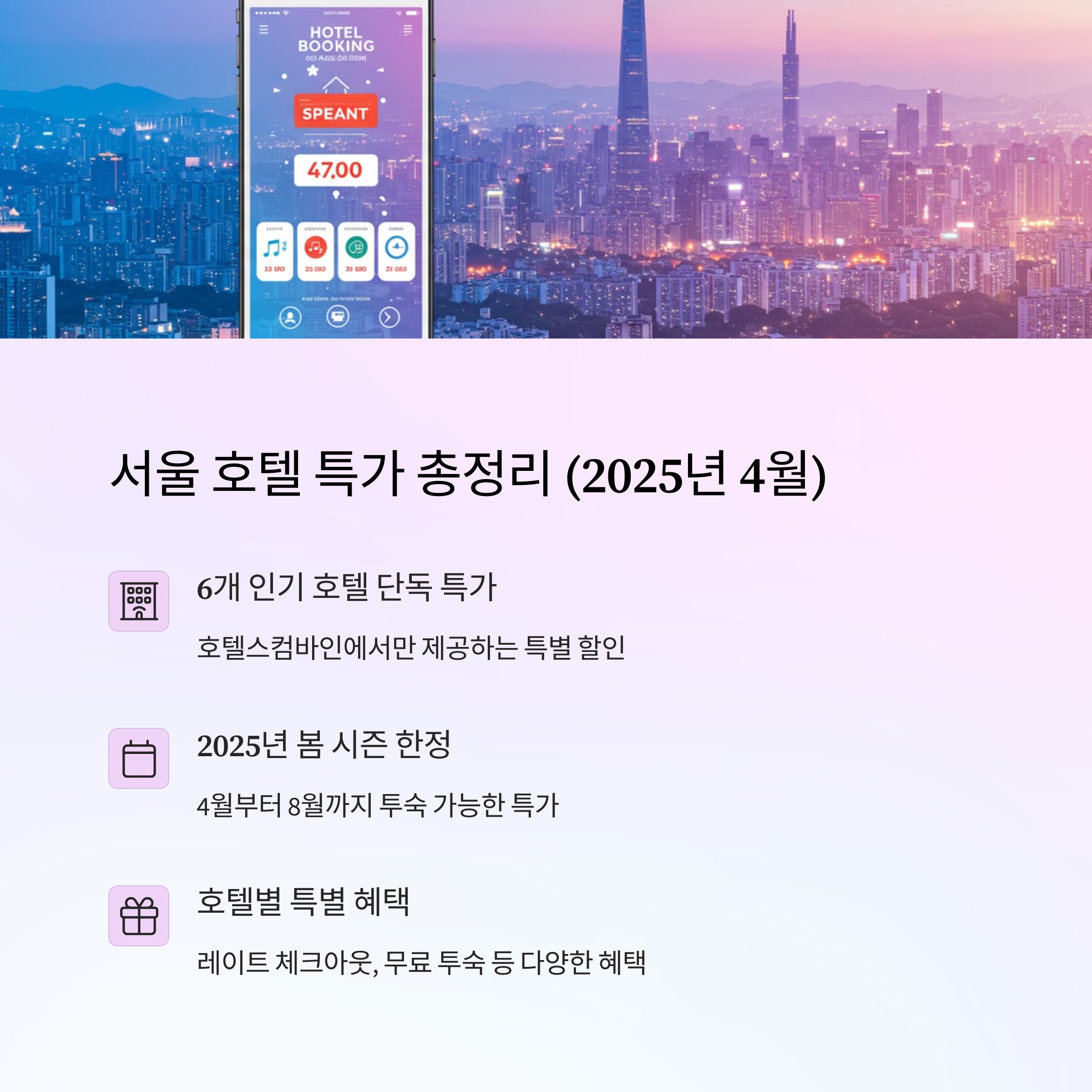 📌 서울 지역 호텔 특가 리스트 (2025년 4월 기준)