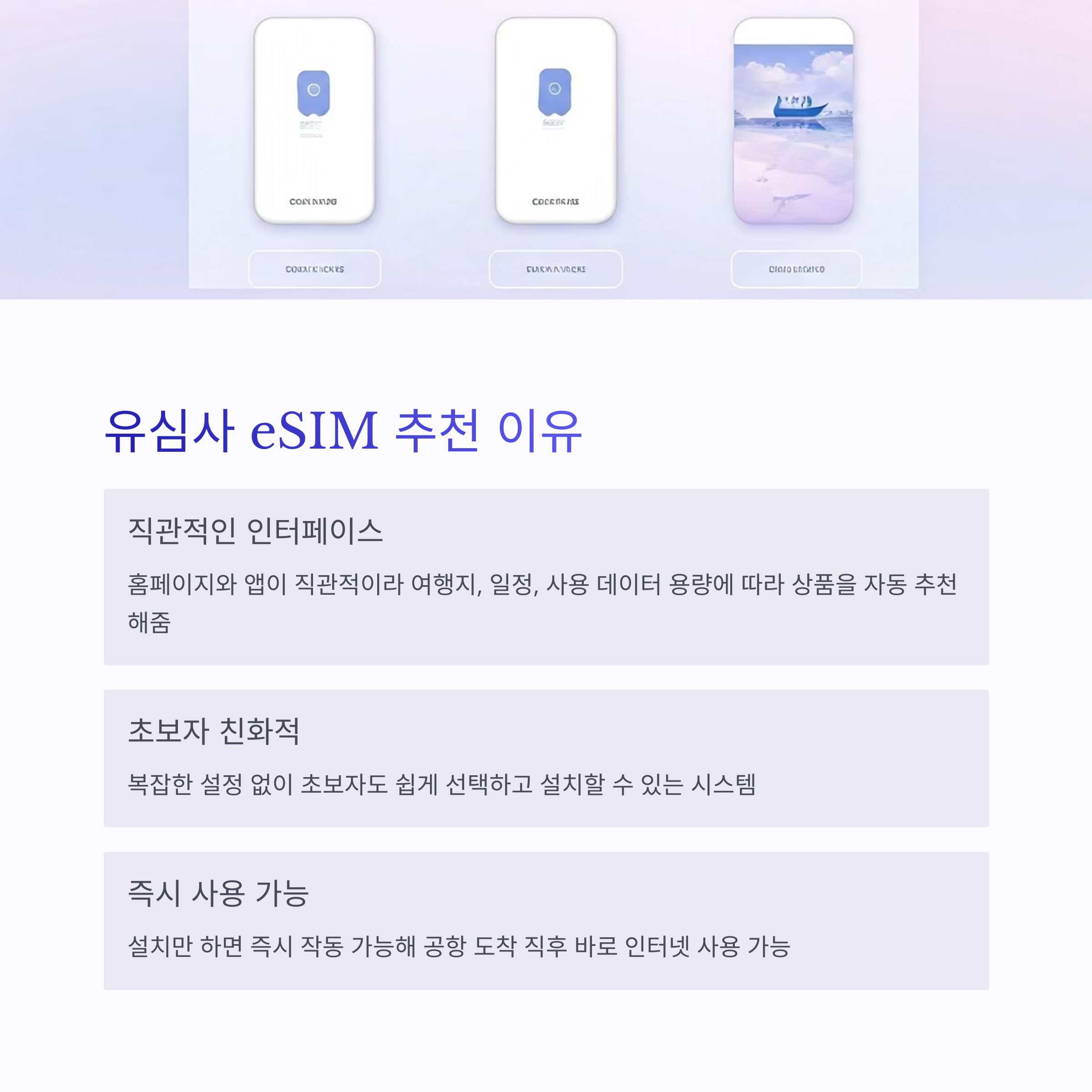 홈페이지나 앱이 직관적이라 여행지, 일정, 사용 데이터 용량에 따라 상품을 자동 추천해줘서 초보자도 쉽게 고를 수 있습니다.