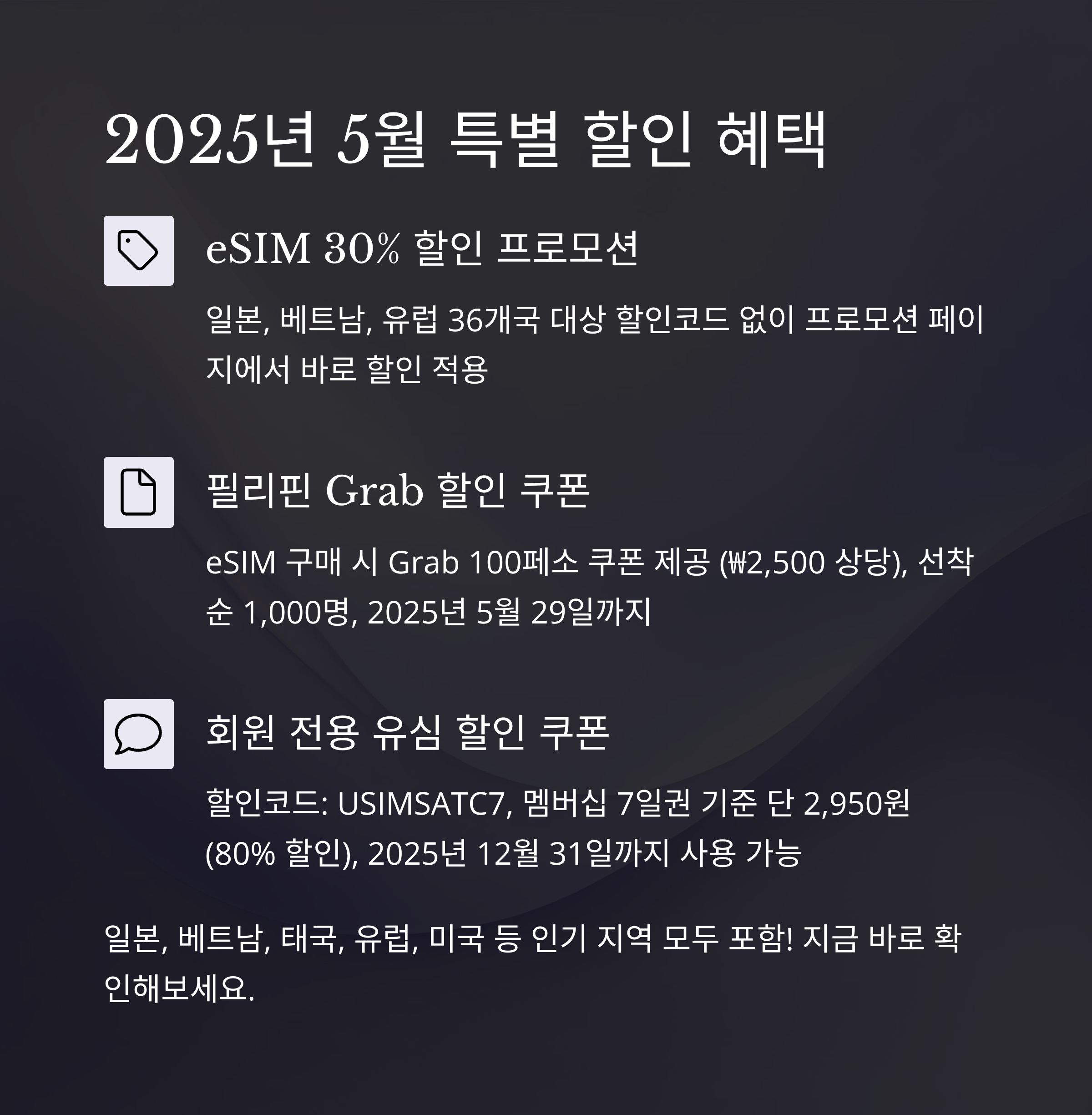 eSIM 30% 할인 프로모션