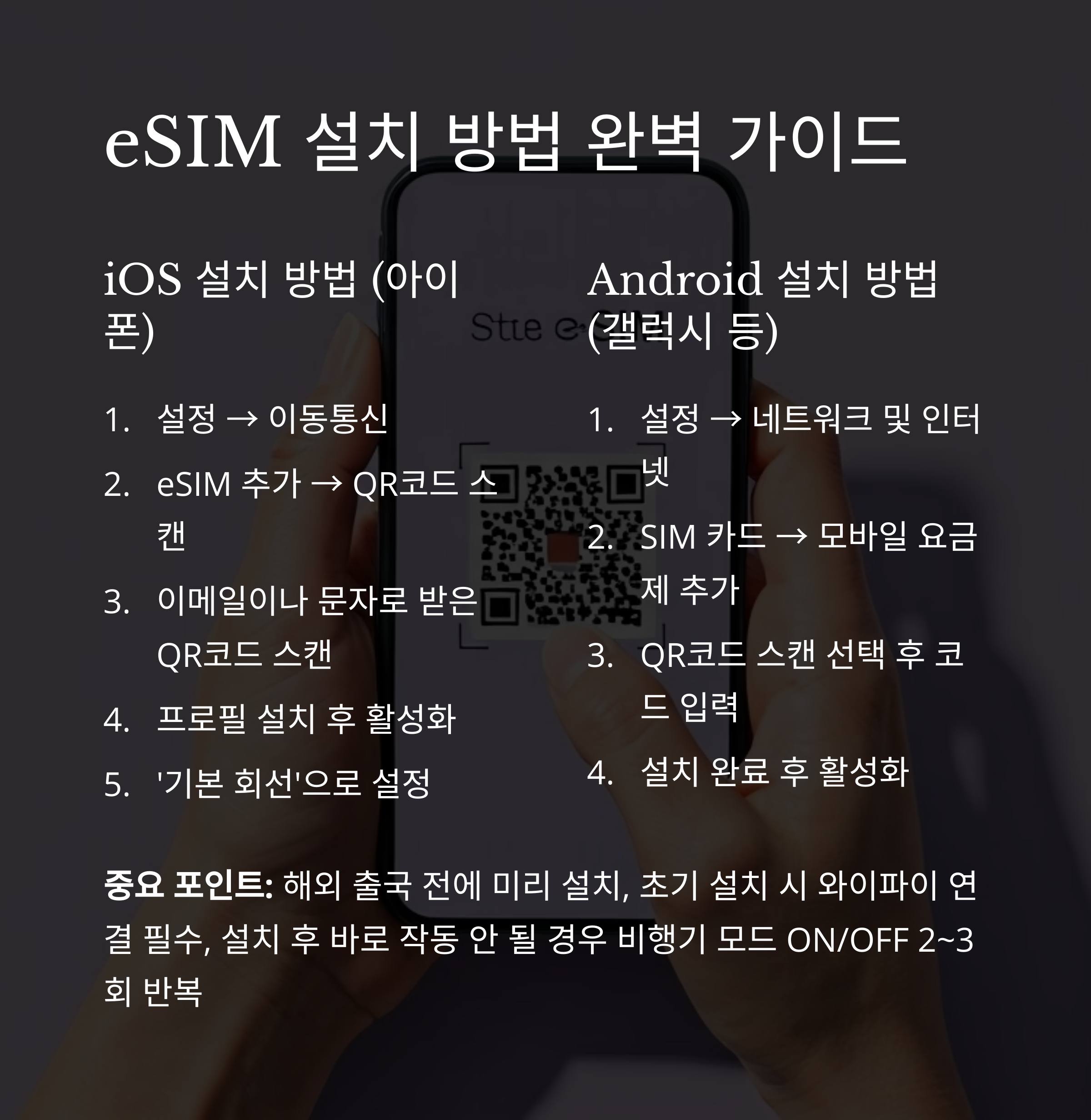 설치 전에 꼭 확인해야 할 점은 내 스마트폰이 eSIM을 지원하는지 여부입니다.