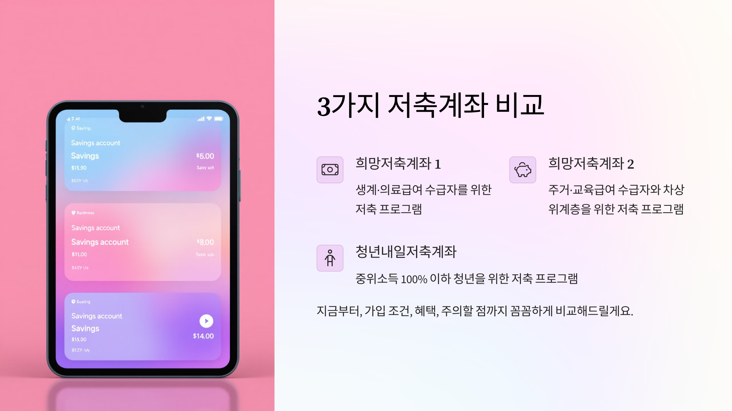 희망저축 1·2 vs 청년내일저축계좌, 내게 맞는 건 뭘까?