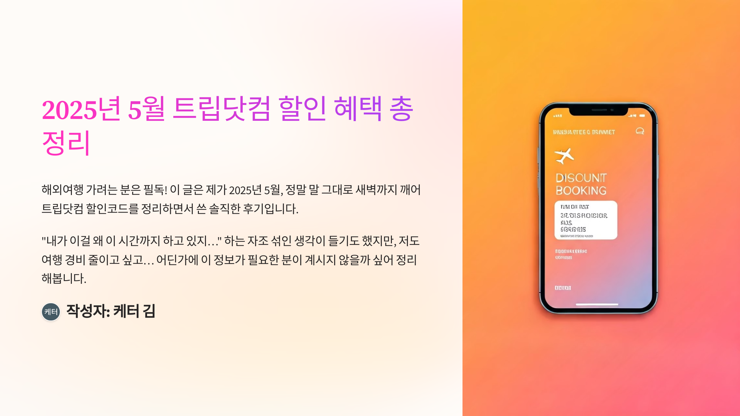 이 글은 제가 2025년 5월, 정말 말 그대로 새벽까지 깨어 트립닷컴 할인코드를 정리하면서 쓴 솔직한 후기입니다.