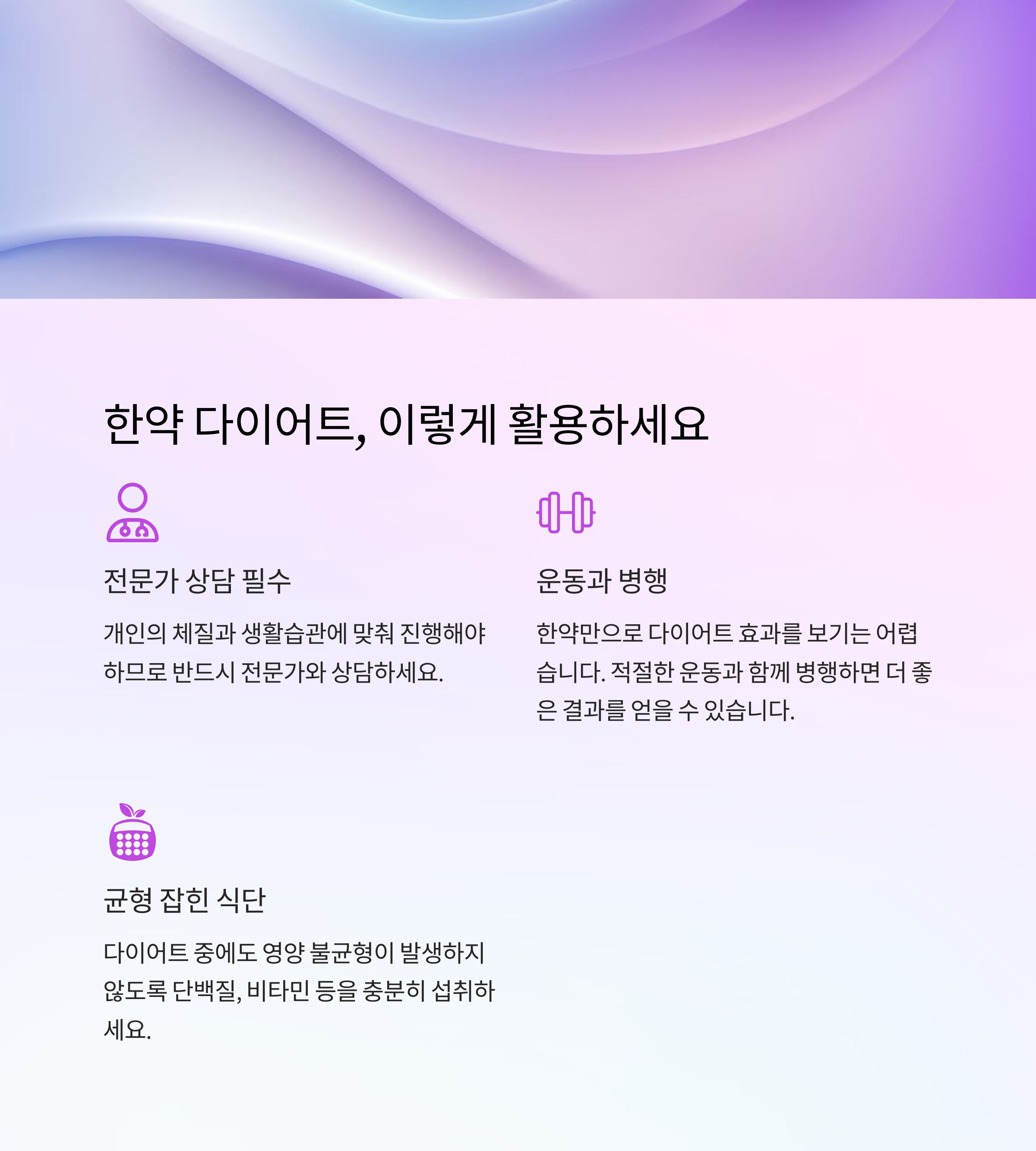 전문가 상담 필수: 한약 다이어트는 개인의 체질과 생활습관에 맞춰 진행해야 하므로 반드시 전문가와 상담하세요.