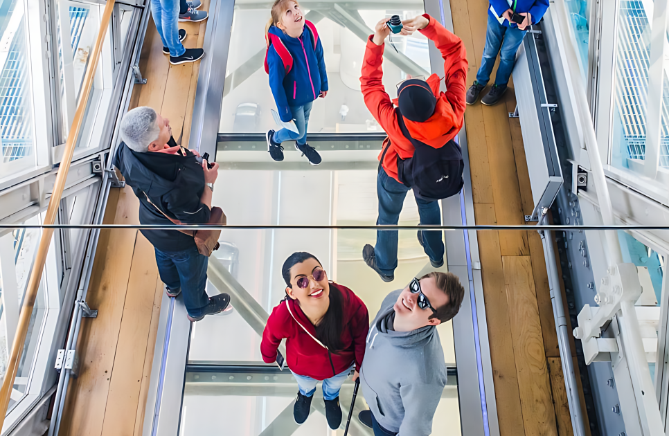 유리 바닥을 걸을 때 느껴지는 짜릿함은 잊을 수 없습니다. 아래로 보이는 템스 강과 다리 위를 지나는 차량들, 그리고 도시의 분주함을 발밑에서 바라보는 경험은 타워 브리지만의 매력입니다. 가슴이 두근거릴 만큼 색다른 시야를 선사해 주죠. 이곳은 런던 여행자라면 꼭 사진으로 남겨야 할 포인트입니다.