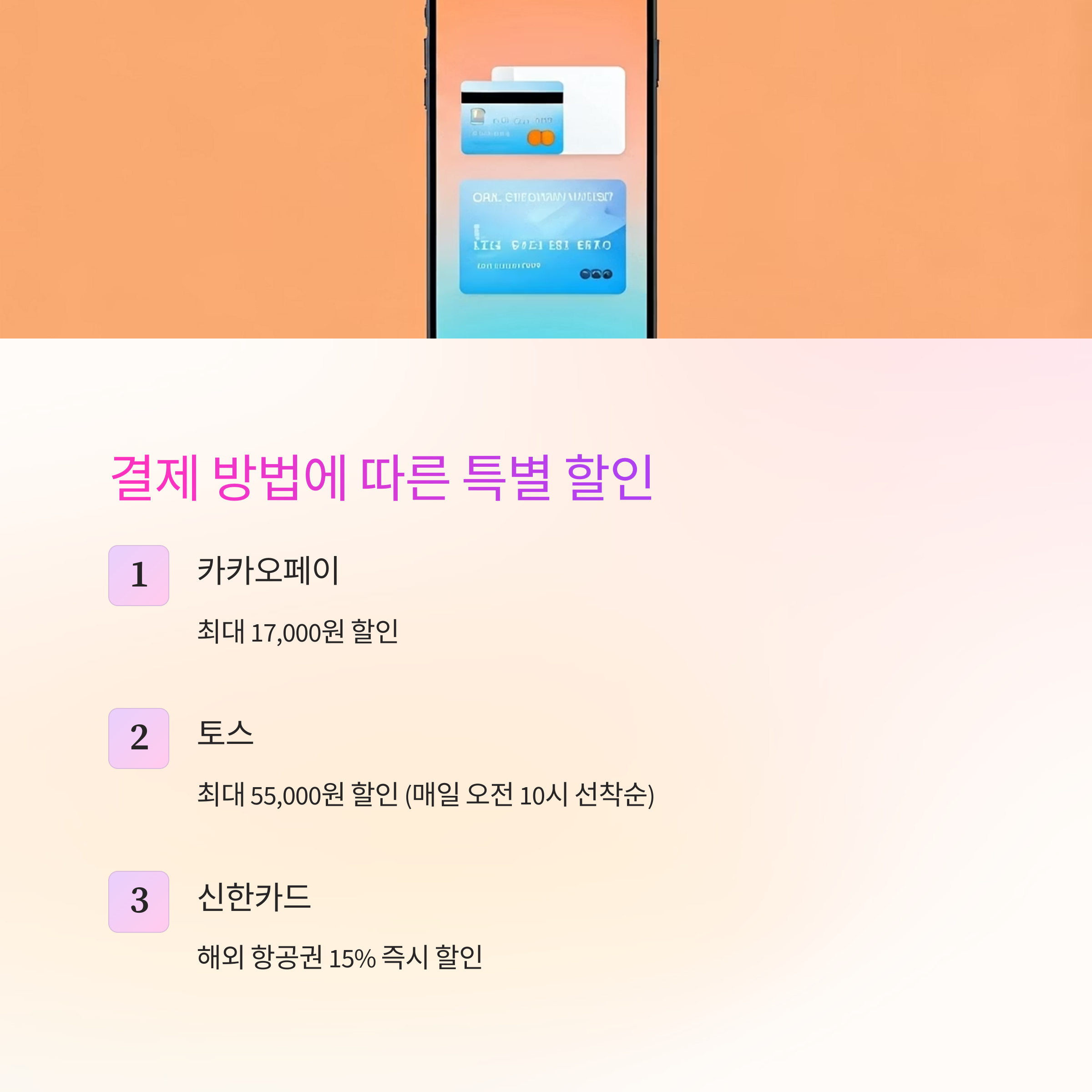 저는 항공권 결제에 신한카드를 쓰기로 했어요. 카드 하나 바꾸는 것만으로도 몇 만 원 차이 나더라고요.