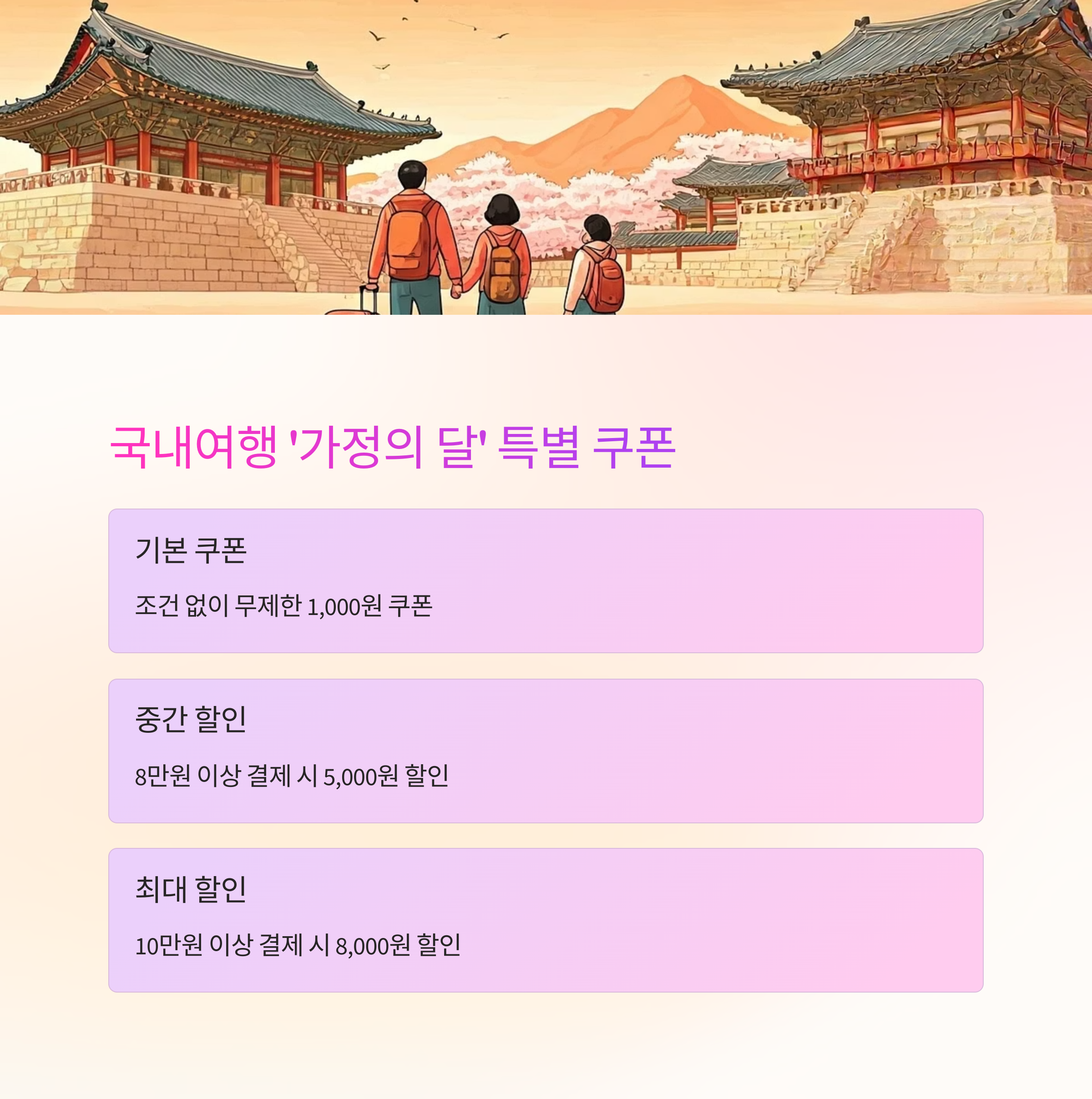 🏠 국내여행도 놓치지 말자! ‘가정의 달’ 주간 쿠폰