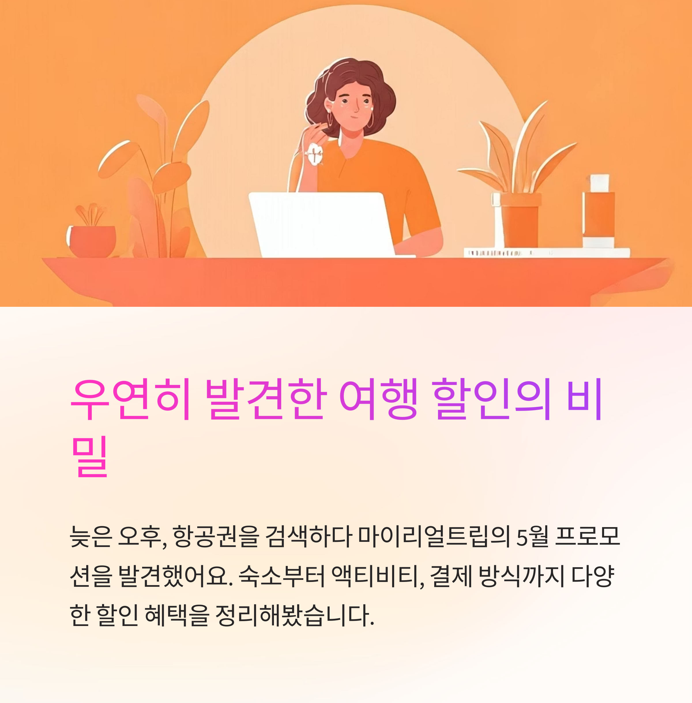 그냥 예약했다면 놓쳤을 수많은 할인 혜택들을 하나씩 찾아보며, 실속 있는 여행이 가능해졌어요.