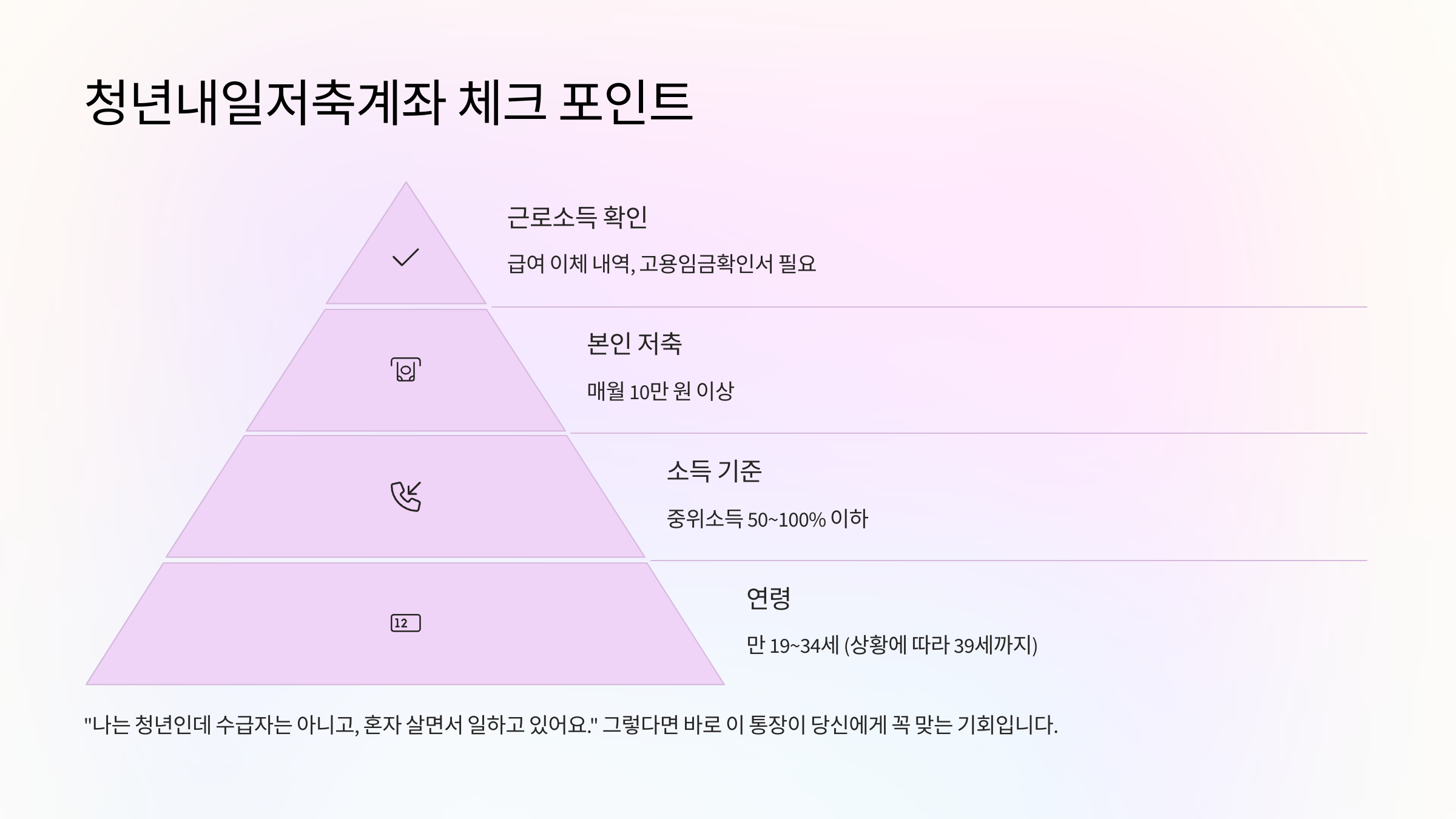 → 중위소득 239만 원 이하 → 청년내일저축계좌 10만 원 매칭 대상!