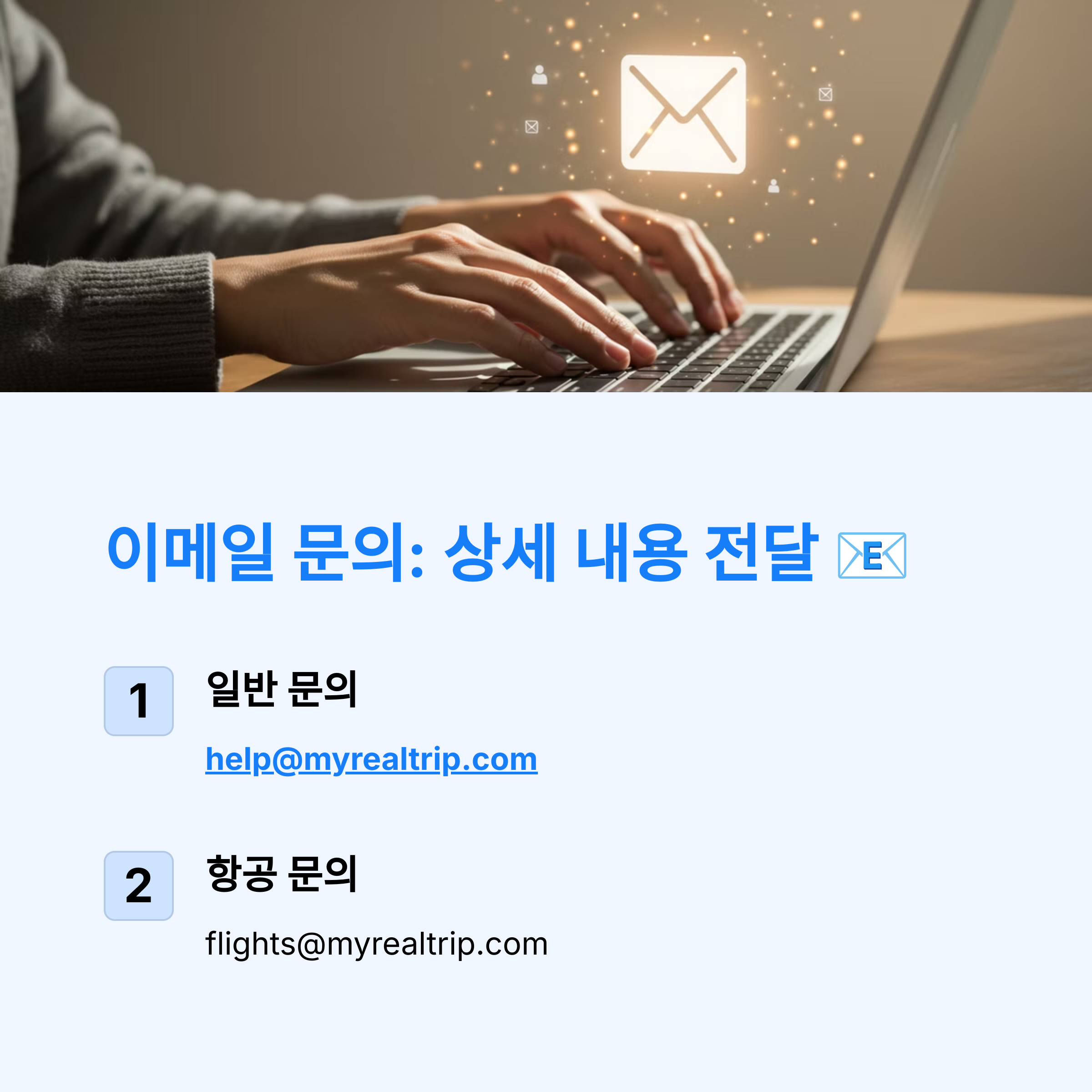 방법: 마이리얼트립 고객지원센터의 '문의하기' 페이지를 통해 상세 내용을 작성하여 문의를 접수할 수 있습니다.