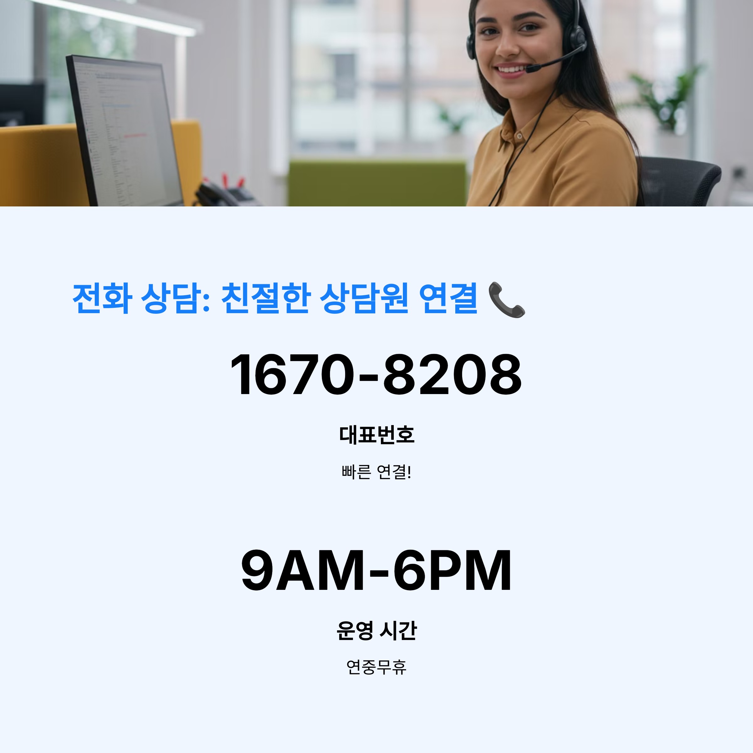 유선 상담: 연중무휴 오전 9시부터 오후 6시까지