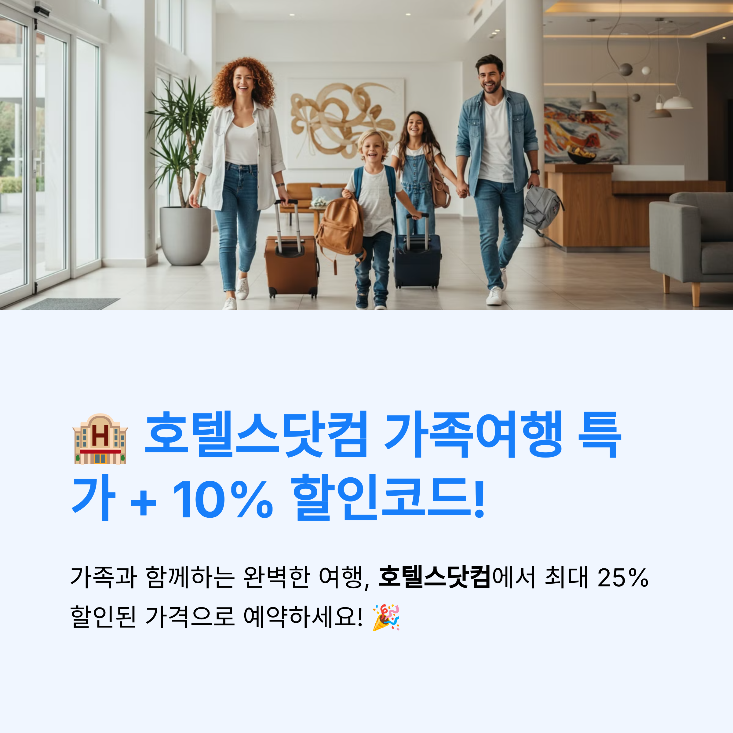 **호텔스닷컴(Hotels.com)**에서 가족 여행 맞춤형 숙소를 최대 25% 이상 할인된 가격으로 예약할 수 있는 기회를 놓치지 마세요! 🎉