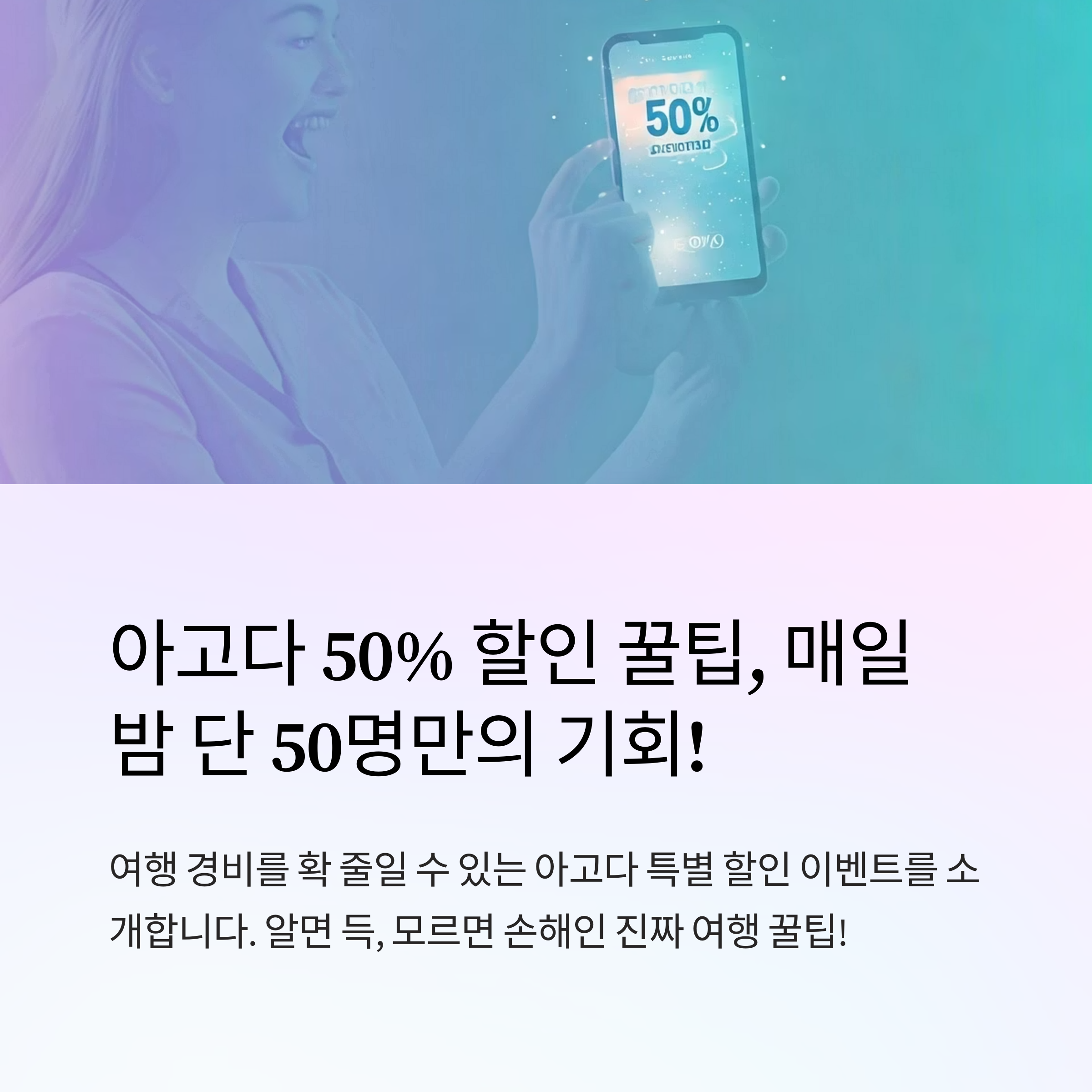 본 글을 광고를 포함하고 있습니다. 아고다 할인코드 50% 할인 등록 방법, 매일 밤 단 50명만 잡을 수 있는 진짜 꿀팁며칠 전, 여행을 준비하다가 우연히 아고다 앱에서 엄청난 할인 이벤트를 발견했어요. 처음에는 “50% 할인”이라는 문구에 혹했지만, 막상 자세히 살펴보니 그 안에도 몇 가지 숨은 규칙이 있더라고요. 실제로 제가 직접 예약해보며 느낀 점과 이 할인 혜택을 제대로 누리는 팁을 정리해봤습니다. 숙소를 정말 저렴하게 예약하고 싶은 분들이라면, 이번 기회 꼭 잡아보세요. 저는 창가에 앉아 여행 루트를 짜던 중, 아고다 앱을 열었어요. 요즘은 구글 지도를 활용하거나 시크릿 모드로 조금 더 저렴한 숙소를 찾는 게 기본이잖아요. 그런데 그날은 눈에 띄게 '50% 할인 쿠폰'이라는 이벤트 배너가..